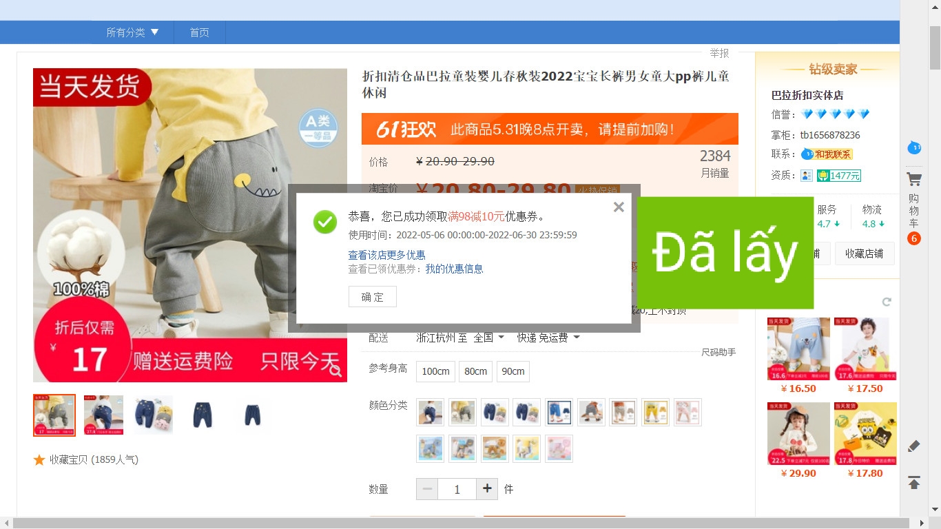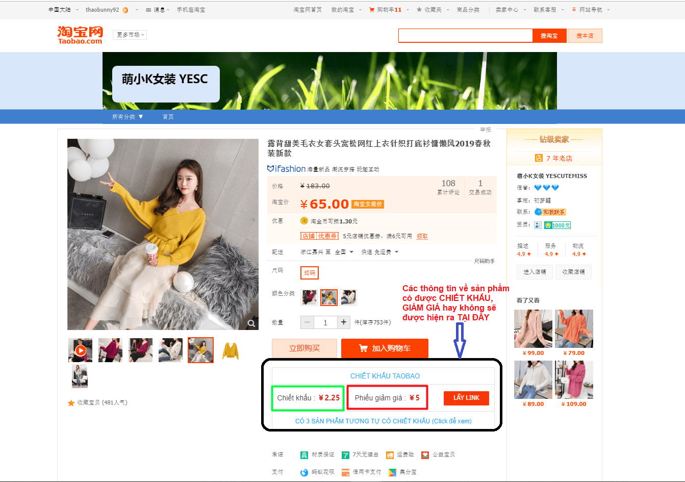 ♻️ Bước 2: Sau khi đã tìm được sản phẩm ứng ý, các bạn sử dụng công cụ nhận chiết khấu tự động trên Taobao nhằm kiểm tra xem sản phẩm đó có đang được giảm giá hay không?