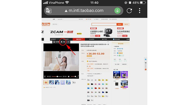 Download video Taobao trên điện thoại trên Cốc Cốc