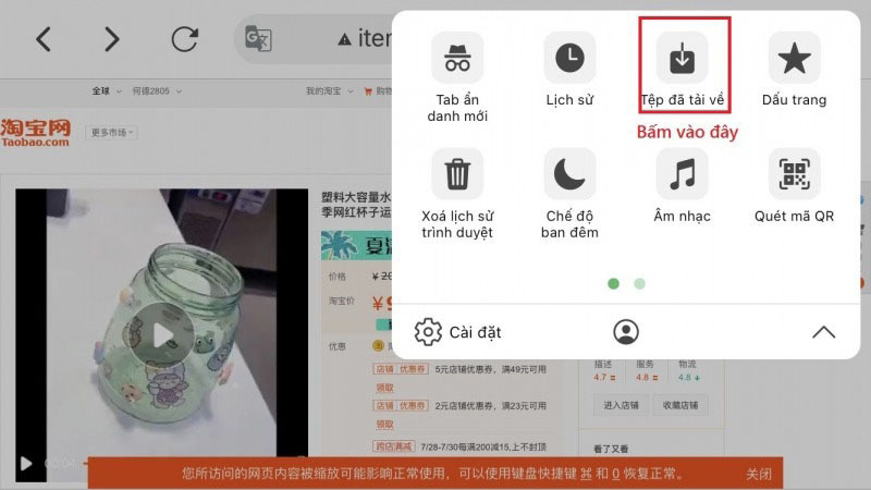 Cách tải video trên taobao bằng điện thoại trên trình duyệt Cốc Cốc cũng khá đơn giản như sau.