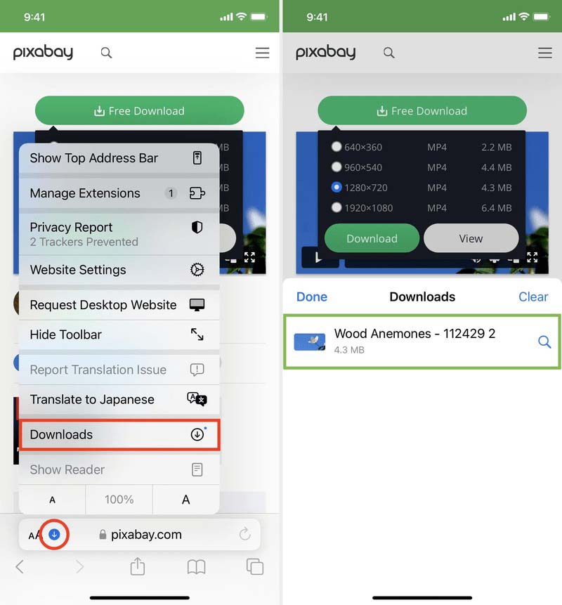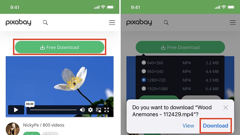 Bước 2: Vào trình duyệt Safari, đồng thời cũng truy cập vào pixaby.com và dán liên kết đó vào thanh công cụ để video hiện ra và download.