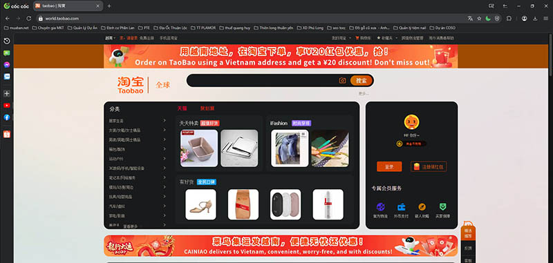 Bước 2: Truy cập vào https://world.taobao.com/ để vào website của Taobao.